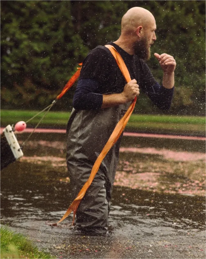 Two ways to do it. The first is dry harvest. Basically, a giant lawnmower combs the crimson berries from their vine. The other is wet harvest. Where we churn the bog water with the biggest “egg beaters” imaginable. The ripe berries rise to the surface. Thanks to tiny air pockets inside.
